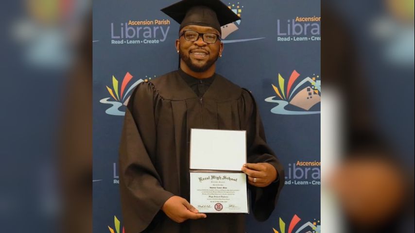One day, Muse's wife found an ad online about a program being offered at the Ascension Parish Library. It was called the Excel Adult High School. It gives adults ages 21 and up a chance to earn their high school diploma online.