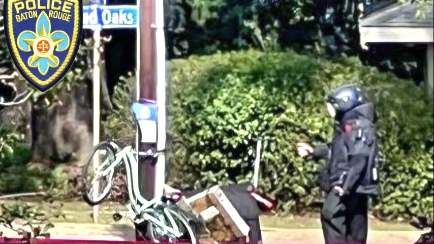 Baton Rouge Police Cpl. Dustin McGinnis was called to the scene of the bomb scare on the corner of Park Blvd and Hundred Oaks on Wednesday. Police said that after putting on his bomb suit, McGinnis found the lights in a package on the back of a bike.