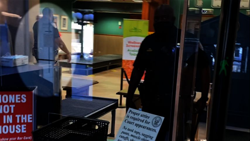Sources told WBRZ that Colby Burns was back working security at City Court. WBRZ cameras captured him briskly walking away as Chief Investigator Chris Nakamoto asked how he could be back at work with a pending domestic violence criminal charge.