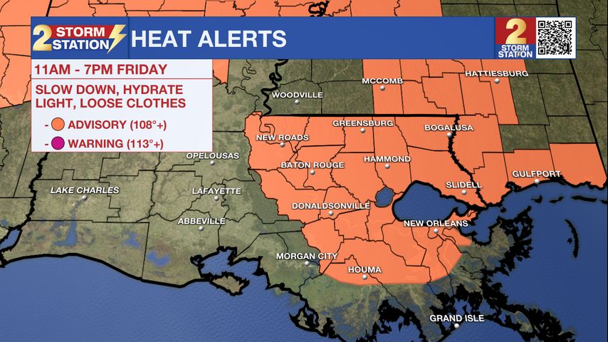 A HEAT ADVISORY IS IN EFFECT FROM 11 AM TO 7 PM FRIDAY. Heat Index values or feels-like temperatures over 107 are expected. Hot temperatures and high humidity may cause heat illnesses. Drink plenty of fluids, stay in an air-conditioned room, stay out of the sun, and check up on relatives and neighbors.
