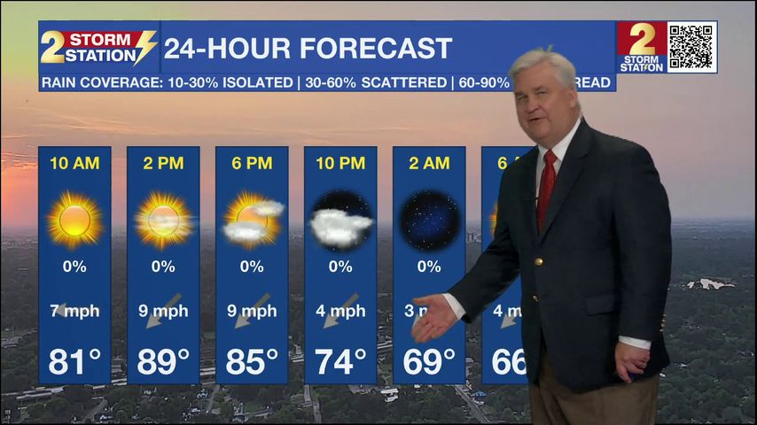 Today & Tonight: Conditions will remain a carbon-copy forecast for the Memorial Day Weekend as high temperatures on Friday will run near 90s degrees with little to no chance for rain in the forecast. The payoff is the humidity will remain on the lower side for at least one more day as a northeasterly wind brings a nice breeze. Overnight conditions will remain clear, dry and comfortable as low temperatures drop to the middle to upper 60s.
