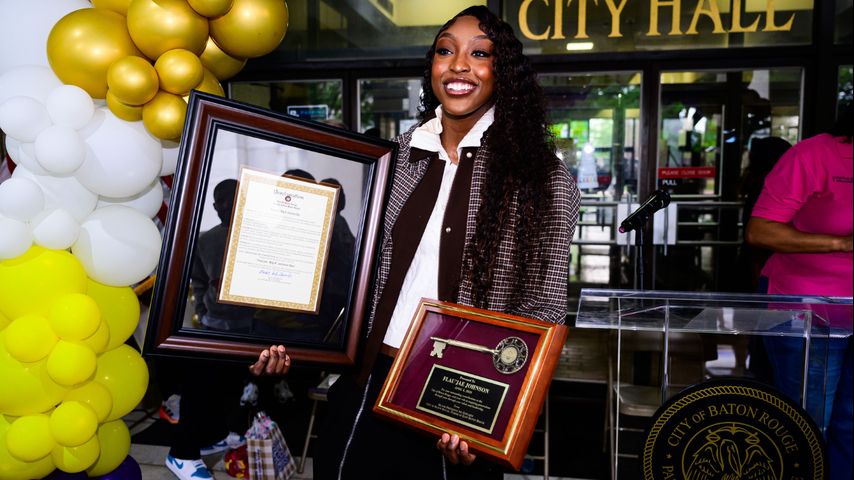 BATON ROUGE — LSU basketball star and rapper Flau'jae Johnson was presented the Key to the City on Saturday by East Baton Rouge Parish Mayor-President Sid Edwards.