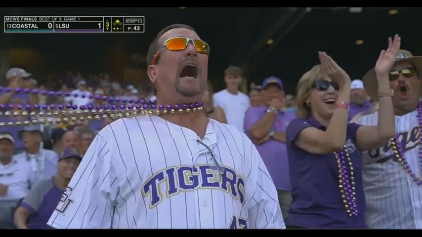 LSU fan goes viral for bead-swinging celebration in Omaha