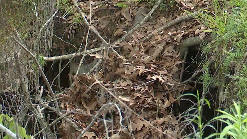 Baker Canal was built in the late 1960s under the Woody Dumas administration. There are large sections of the canal that are broken up and eroding the dirt underneath. Mr. James says the trouble really started after the 2016 flood. That's when a large hole formed and since has swallowed trees and at least 30 feet of his property. The hole can fit several cars inside.
