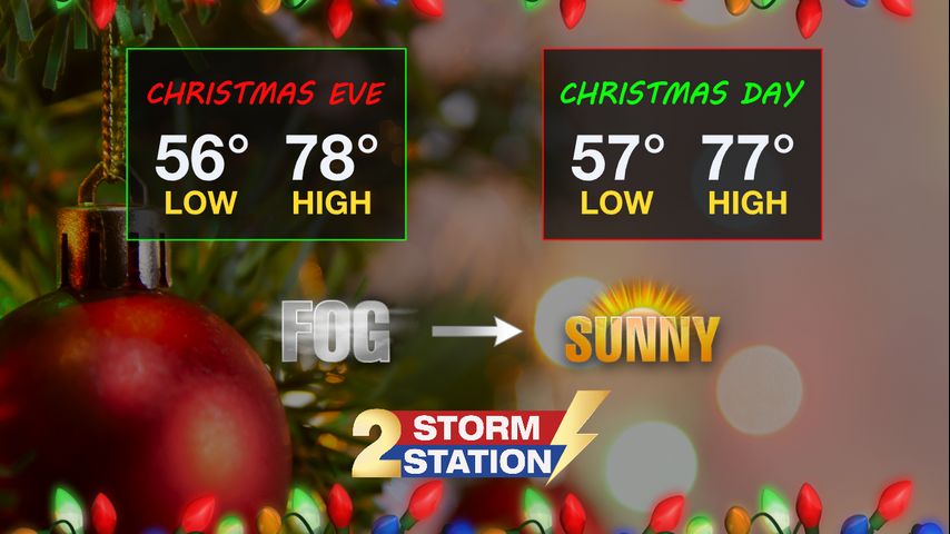 Up Next: High pressure strengthens over the region through midweek, locking in a dry and warm pattern. Daytime highs will remain in the upper 70s, with a few spots flirting with 80 degrees as we approach Christmas. Nights will stay mild, generally in the upper 50s to near 60.