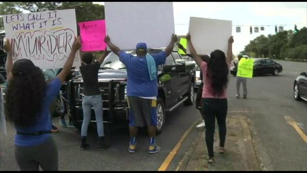 A small contingent of protesters with signs showed up at the intersection of Airline Highway and Goodwood. Baton Rouge Police Department Headquarters are located at 9000 Airline Hwy.
