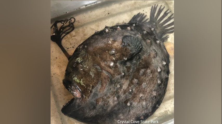 Representatives with Crystal Cove State Park Pacific say a type of Angler Fish called a Pacific Football Fish washed up on the shores of Newport Beach, about 60 miles south of Santa Monica.