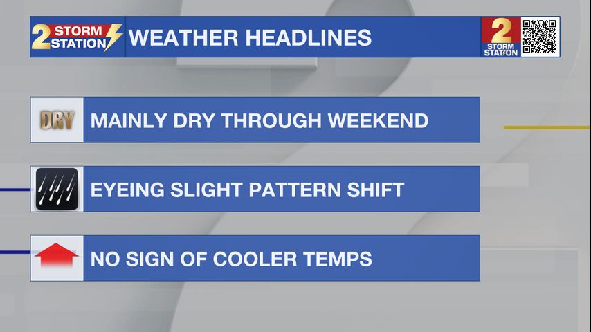 Up Next: The weather holds steady into Sunday, with partly sunny skies and highs in the low 90s. While a stray shower is possible, most outdoor plans should go off without a hitch. Monday marks the official start of fall, and the atmosphere will start to show some changes too. A series of upper-level disturbances will bring better rain chances through midweek, with about 30–50% coverage each day. Most spots should see at least one round of showers or storms during that period. Thanks to the added clouds and rain, highs will ease back into the upper 80s—much closer to average for this time of year.