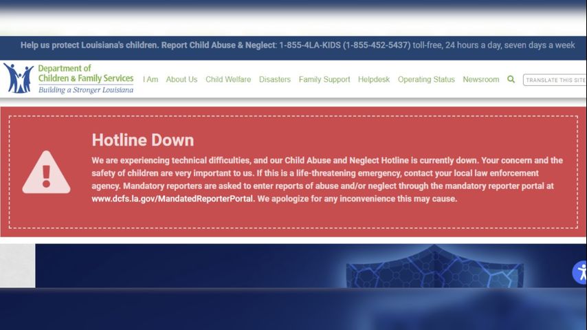 BATON ROUGE — The Department of Child and Family Services' Child Abuse and Neglect Hotline went offline on Tuesday.