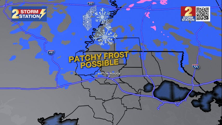 Tonight & Tomorrow: Clear skies and light winds will set the stage for a chilly night ahead. Temperatures will fall fast after sunset, which is now in the 5 o’clock hour. Morning lows will bottom out near 40° in Baton Rouge. As usual, temperatures will run a bit warmer closer to the coast and a few degrees cooler north of the city. Some spots north of the interstate might briefly dip into the 30s. Such temperatures would support patchy frost. Especially for those in low-lying areas, such as river valleys, or locations along and north of the interstate, it’s a good idea to protect tender tropical plants before heading to bed. That said, widespread frost is not the expectation.