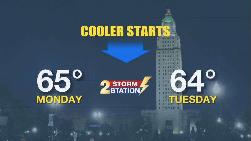 Tonight & Tomorrow: A full-blown punch of dry air will move into the Capital Area after sunset. There will be no mugginess to feel by morning. A slight northeast breeze may stir the air just enough to hold temperatures a bit higher in some spots. Nevertheless, drier air should cause morning lows to tumble into the mid-60s. A few neighborhoods, mainly north of I-12, might sneak into the low 60s. This could have a few folks grabbing a light jacket for the first part of the day. Sunshine will dominate from start to finish on Monday. And even with the sun out, reaching 90° will be difficult. Most will experience a high in the upper 80s.