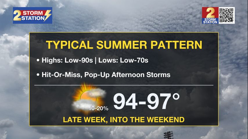 Our typical gulf coast summertime pattern kicks into high gear as we head towards the weekend. Expect lots of sunshine, hot afternoons, humid air, and a chance for afternoon pop-up storms.