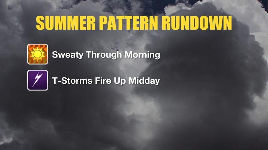 The typical summer pattern continues—hot, humid, with daily storm chances that will gradually decrease into early next week, allowing the heat to crank up even more. Stay hydrated, find some shade, and be prepared for those steamy afternoons!