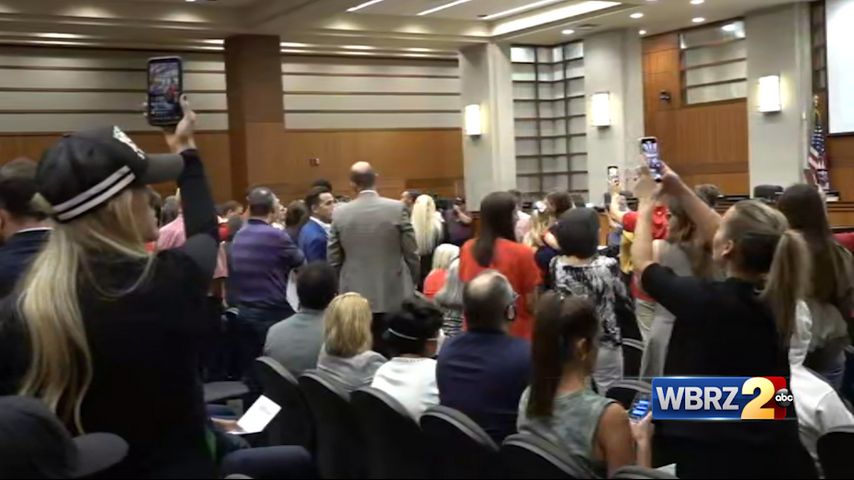 BATON ROUGE - A meeting where the state board that governs schools was set to discuss masking requirements on campuses was cut short Wednesday after a crowd of maskless parents refused to leave the council chambers.