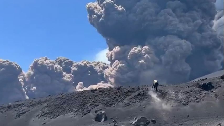 Video showed tourists running along a path on the flank of the vast volcano with smoke billowing some distance in the background. Excursions are popular on Etna, which is some 3,300 meters (nearly 11,000 feet) high, with a surface area of some 1,200 square kilometers (about 460 square miles.)