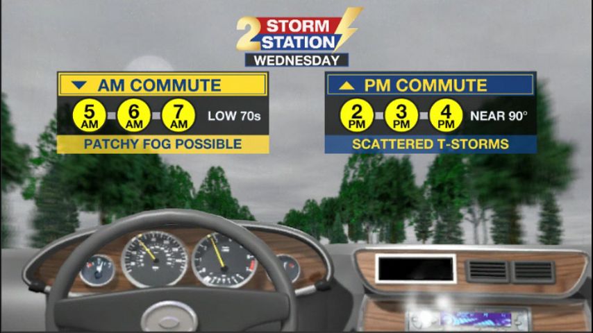 Fog may slow your Wednesday morning commute before another round of storms that could impact the evening drive home. Each afternoon through Father’s Day will bring heat, humidity, and scattered storms, so plan outdoor activities with rain in mind.
