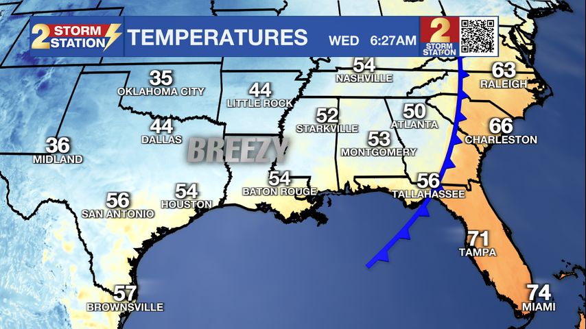 Beyond: By Sunday morning, skies will clear and give way to plenty of sunshine for the second half of the weekend. Despite a cold front passage with the storms on Saturday, temperatures will hold in the 70s each afternoon through at least the first part of next week. Mornings will dip into the 40s and low 50s.
